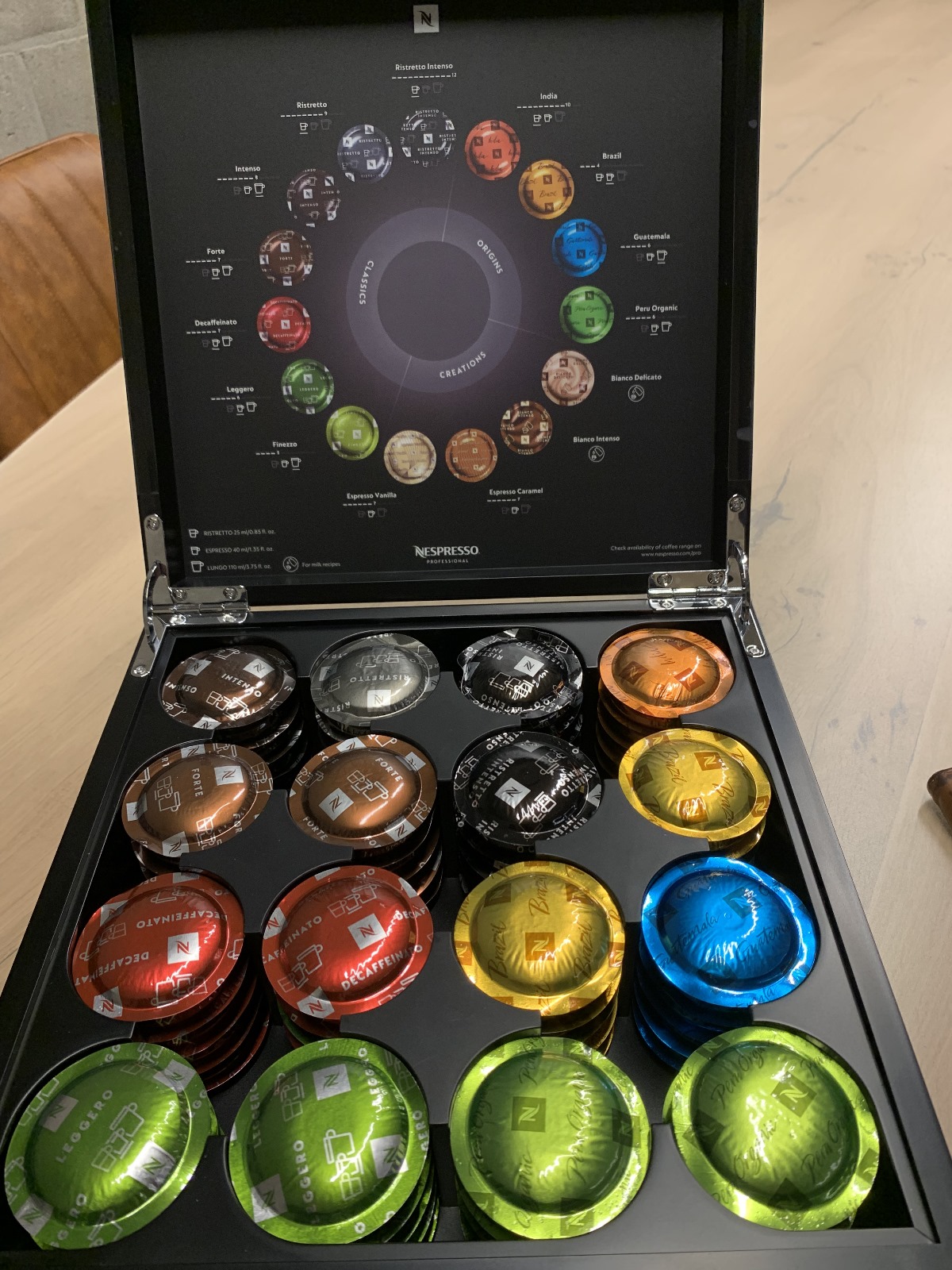 Professioneel Hotel Nespresso machine met keuze uit 15 verschillende soorten koffies.